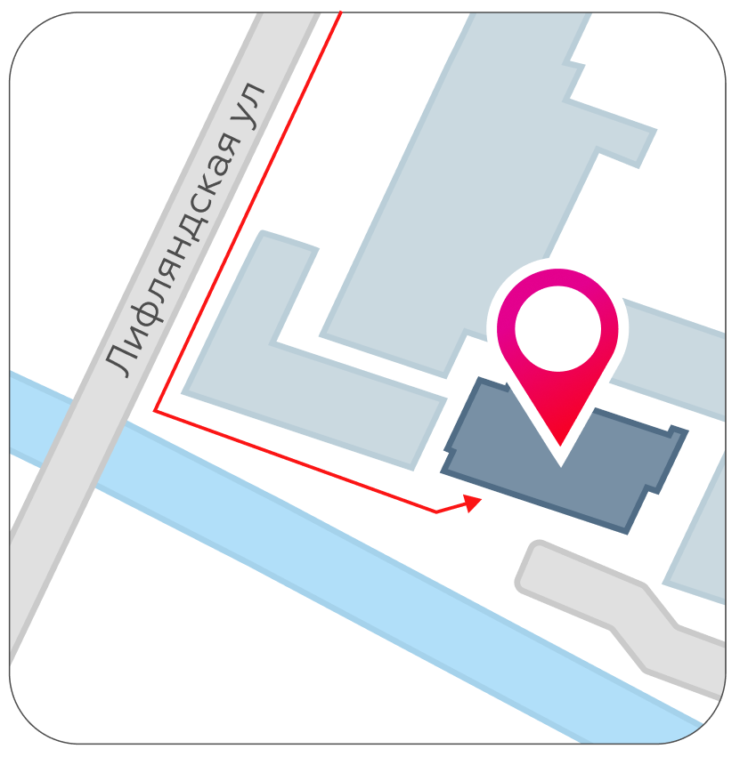 Пройдите по схеме от станции метро «Нарвская» до поворота с набережной Бумажного канала
