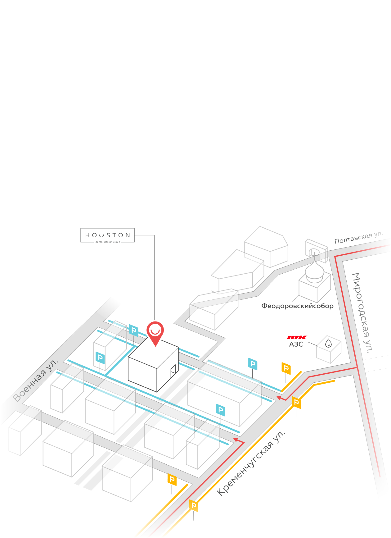 до клиники на машине, можете воспользоваться навигатором